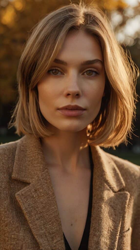 Adding face-framing highlights—often called “money pieces”—to a blunt bob creates a beautiful halo effect that brightens the face and adds dimension to the cut. These highlights are typically placed along the hairline and are several shades lighter than your base color.